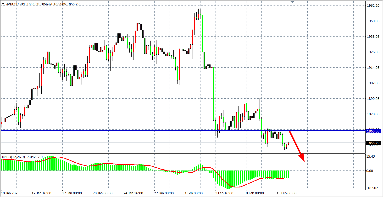 交易策略:在1865.00 之下看跌,目标1830.00 1820.00