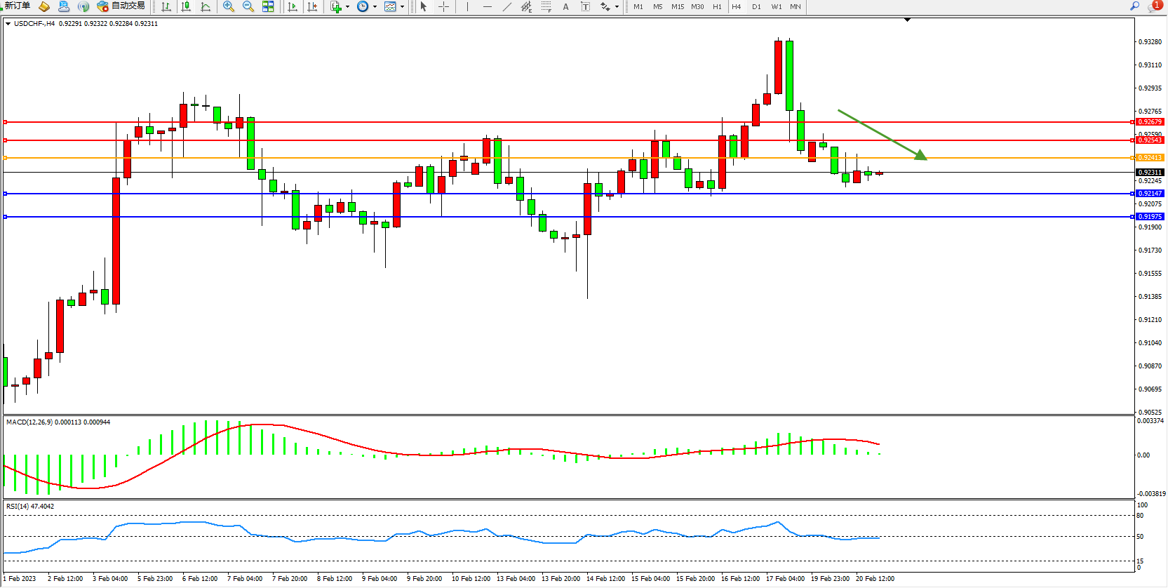 美元瑞郎USDCHF——4小时K线图显示: