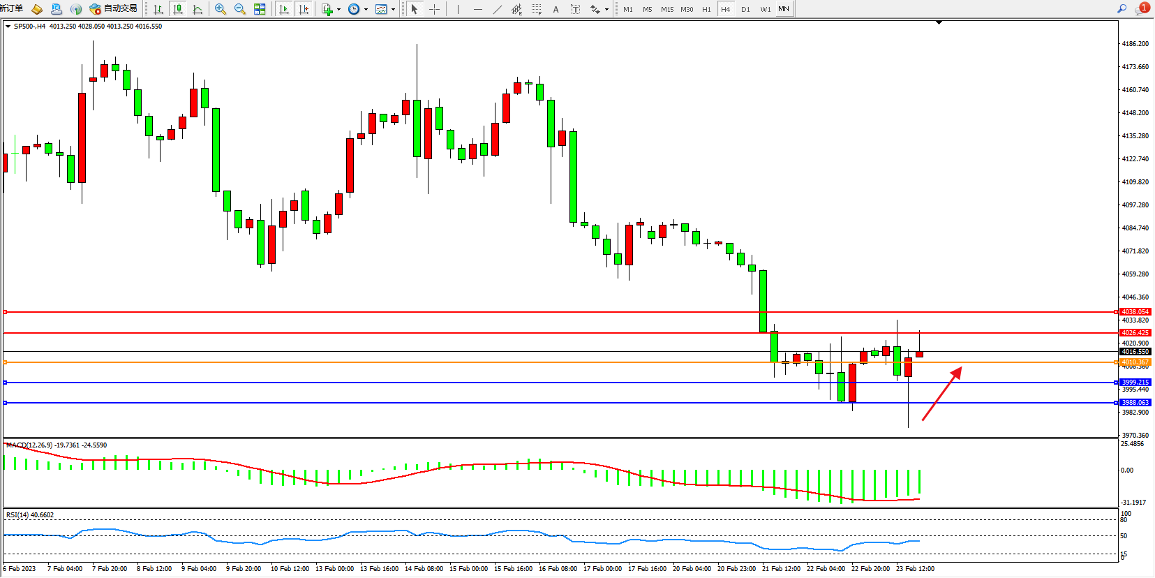 标普SP500——4小时K线图显示: