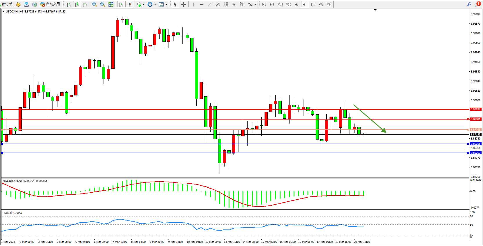 交易策略:6.87703下方看跌,目标6.86208 6.85263