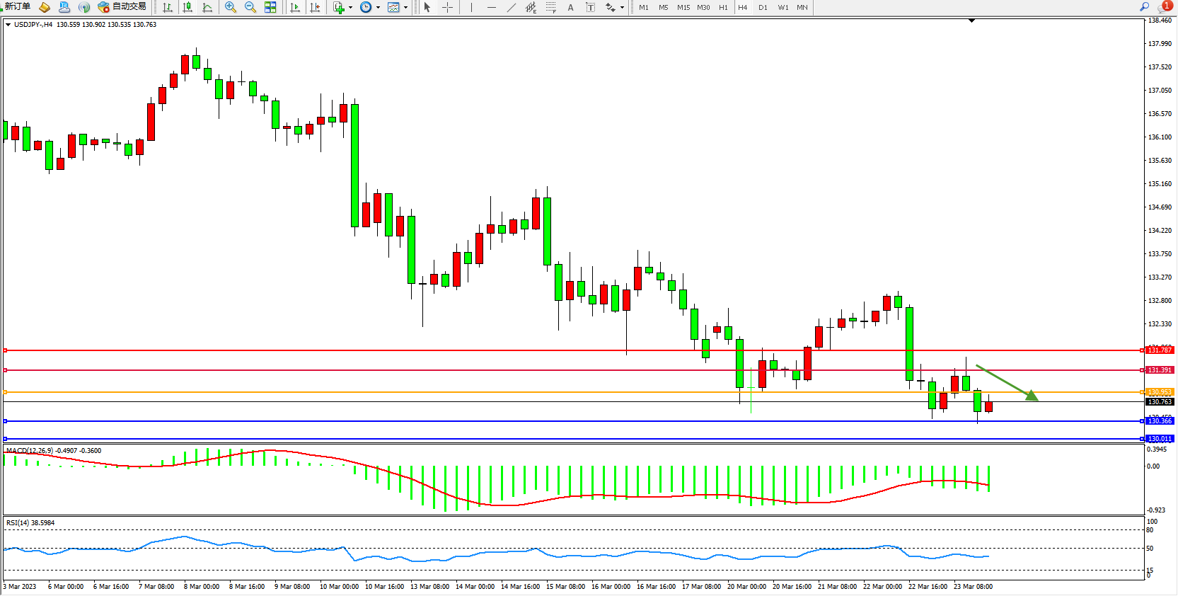 交易策略:130.953下方看跌,目标130.366  130.011