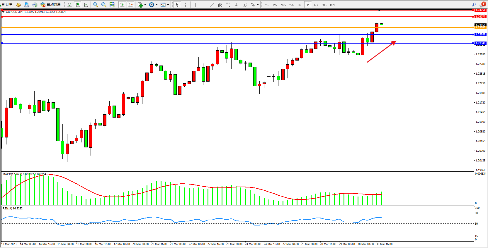 英镑美元GBPUSD ——4小时K线图显示:
