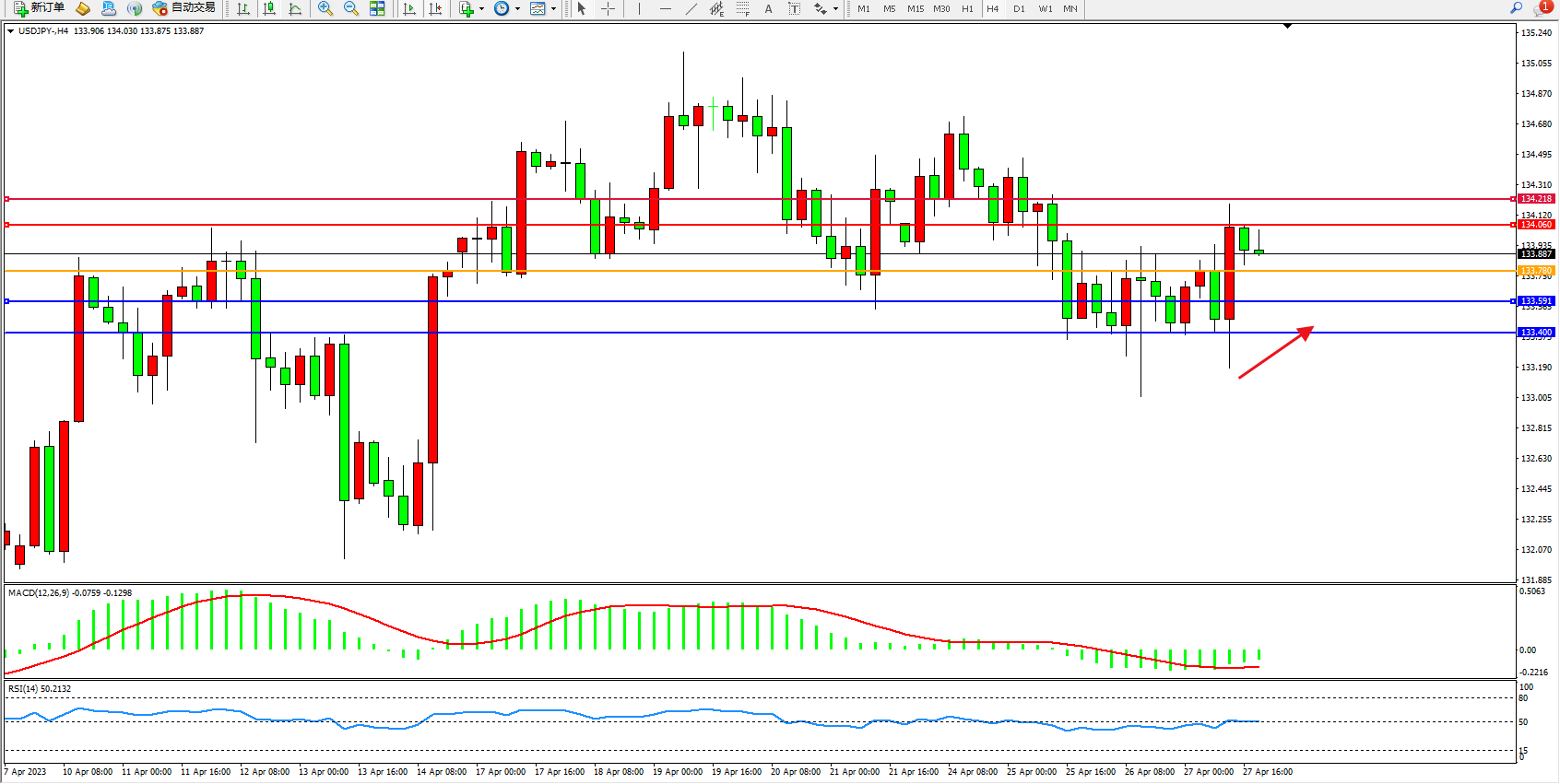 支撑位:133.591  133.400