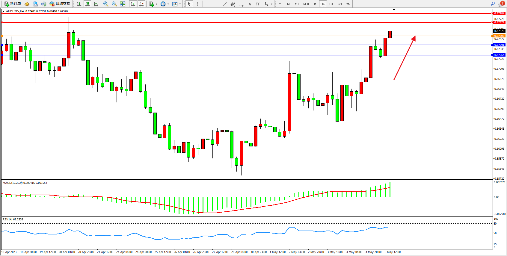 阻力位:0.67672  0.67784
