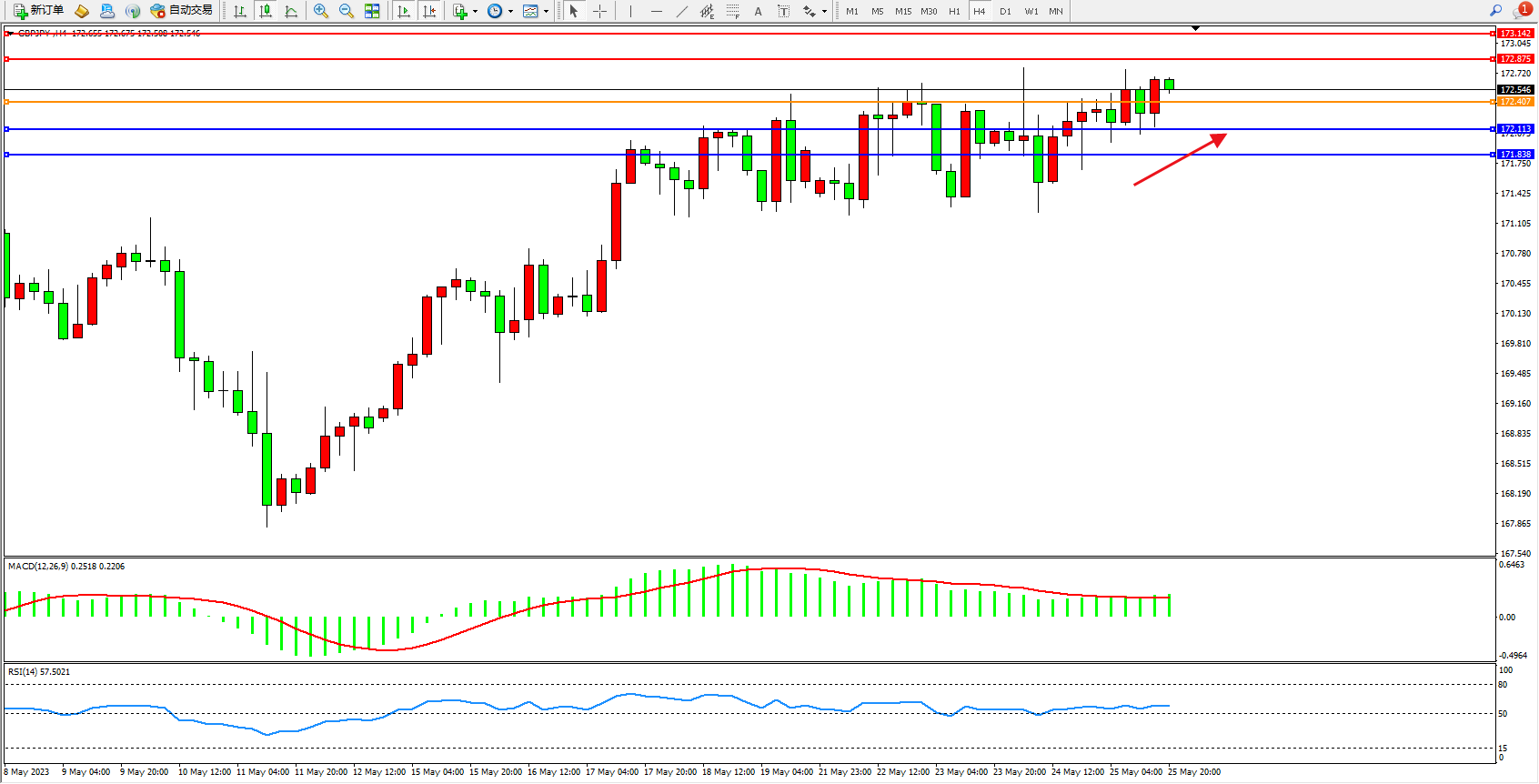 交易策略:172.407上方看涨,目标172.875  173.142