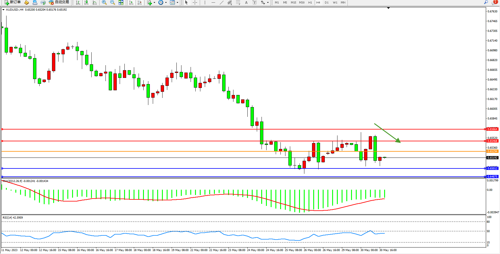 交易策略:0.65294下方看跌,目标0.65012 0.64875