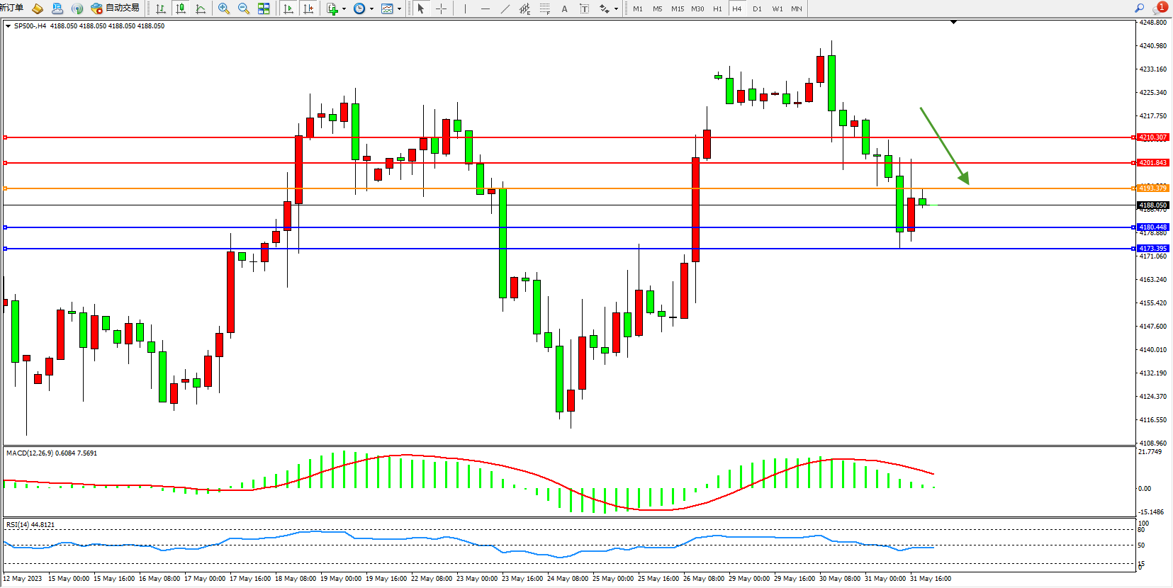 标普SP500——4小时K线图显示: