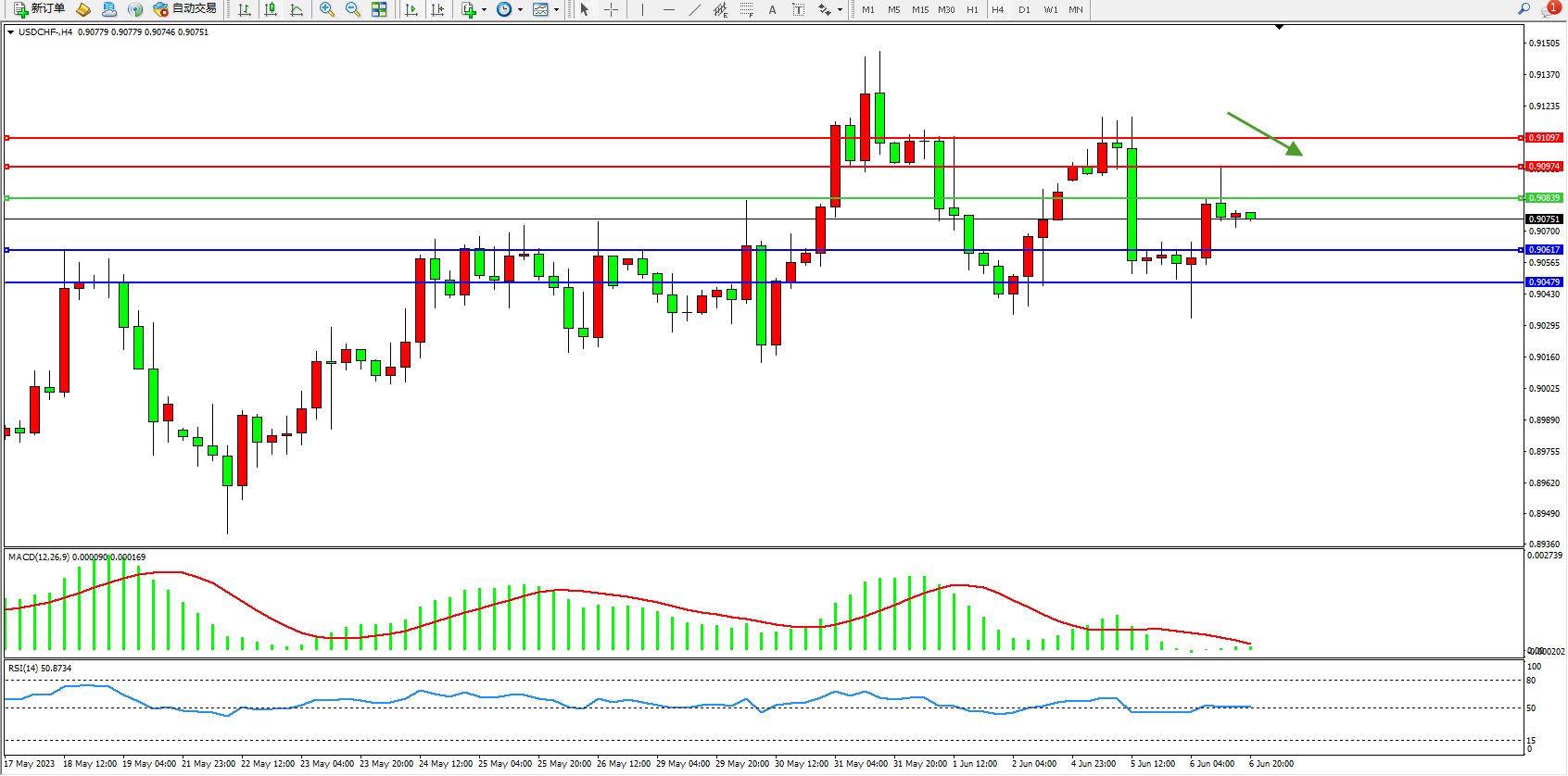 美元兑瑞郎维持0.90751附近震荡,年初至今,瑞郎兑美元仍是G10中表现第二好的货币,源于3月美国地区性银行危机以来的强势正逐渐消退,且即使国内央行再度加息,亦不太可能阻止美元兑瑞郎进一步在0.91上方盘整。