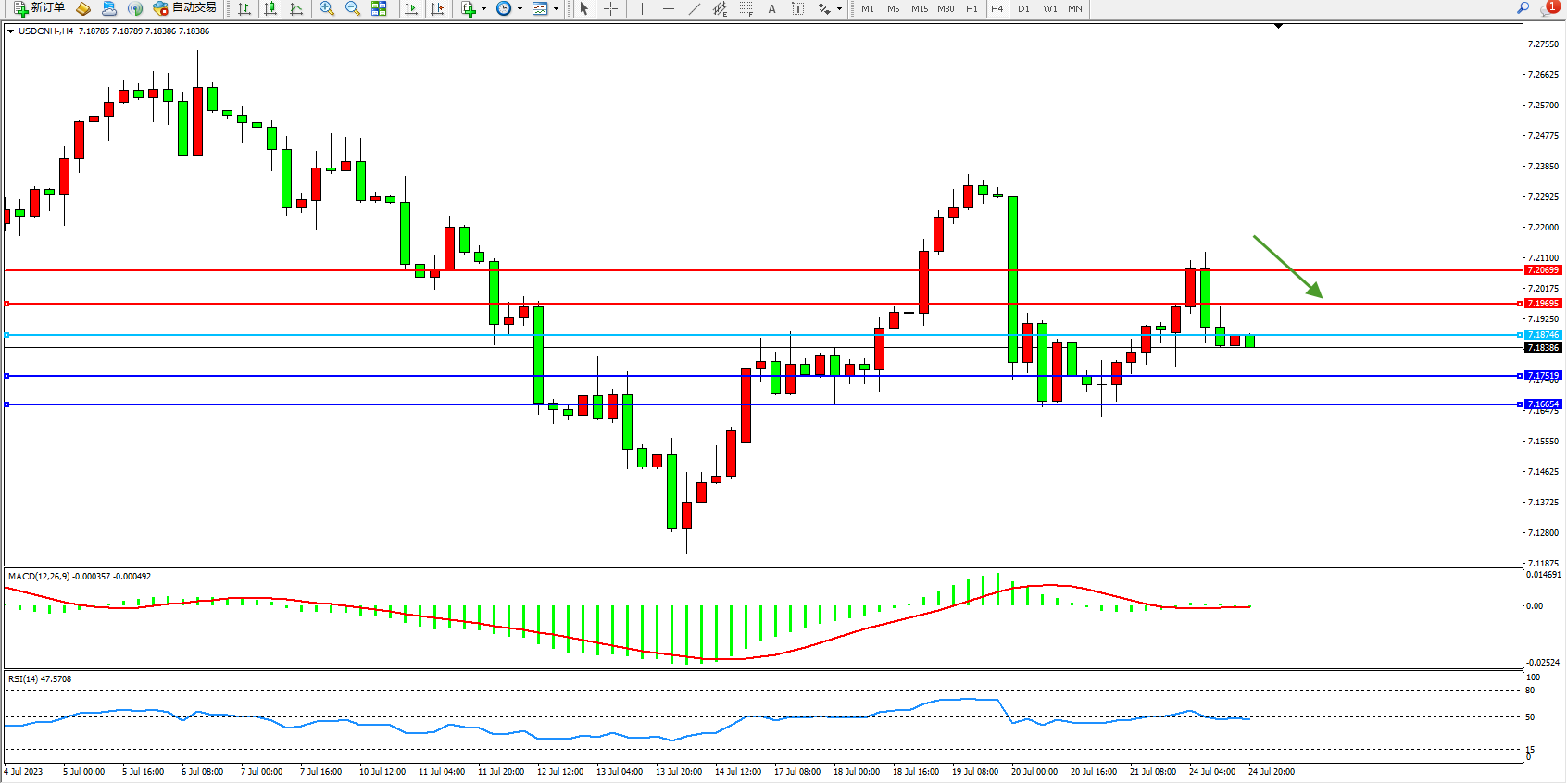 备选策略:7.18746上方看涨,目标7.19695 7.20699