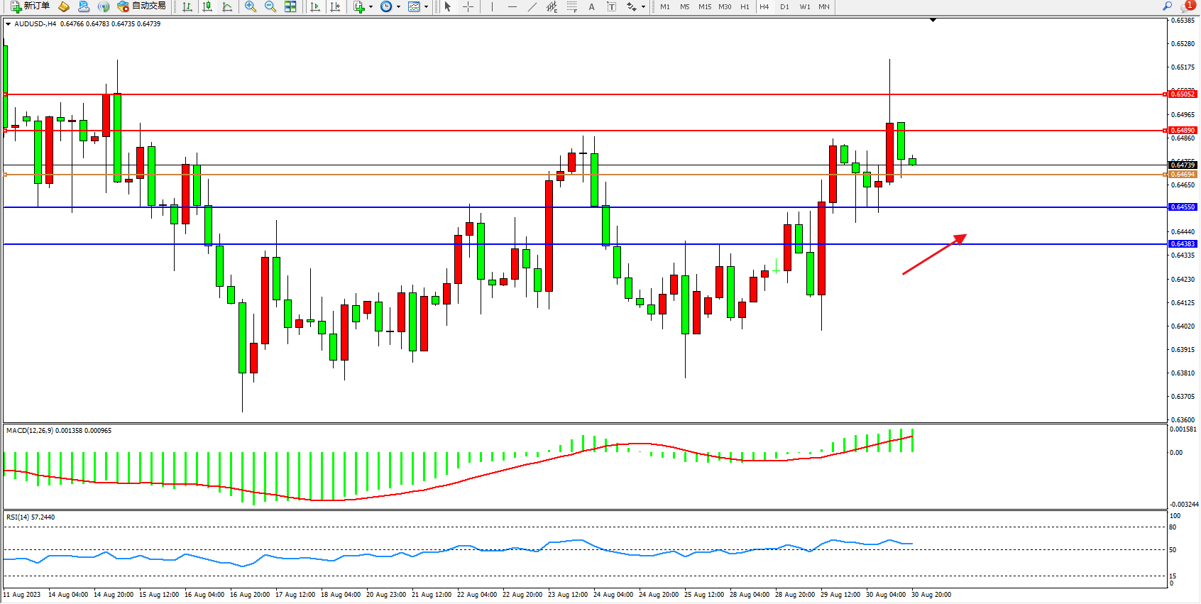 交易策略:0.64694上方看涨,目标0.64890 0.65052