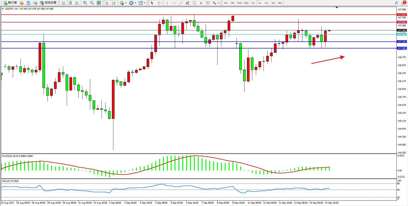 交易策略:147.347上方看涨,目标147.657 147.845