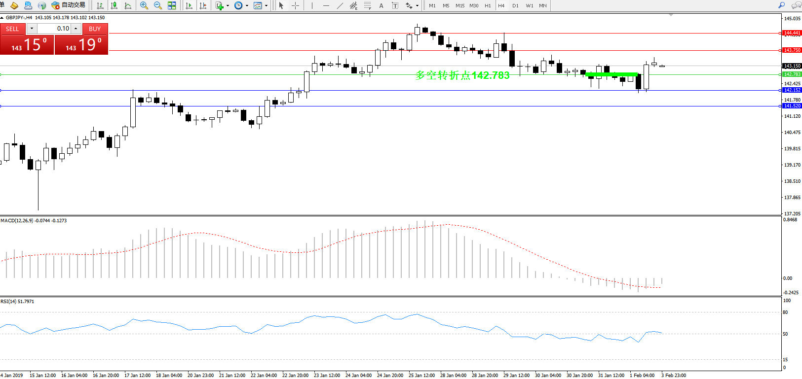 交易策略:142.783上方看涨,目标143.750、144.441