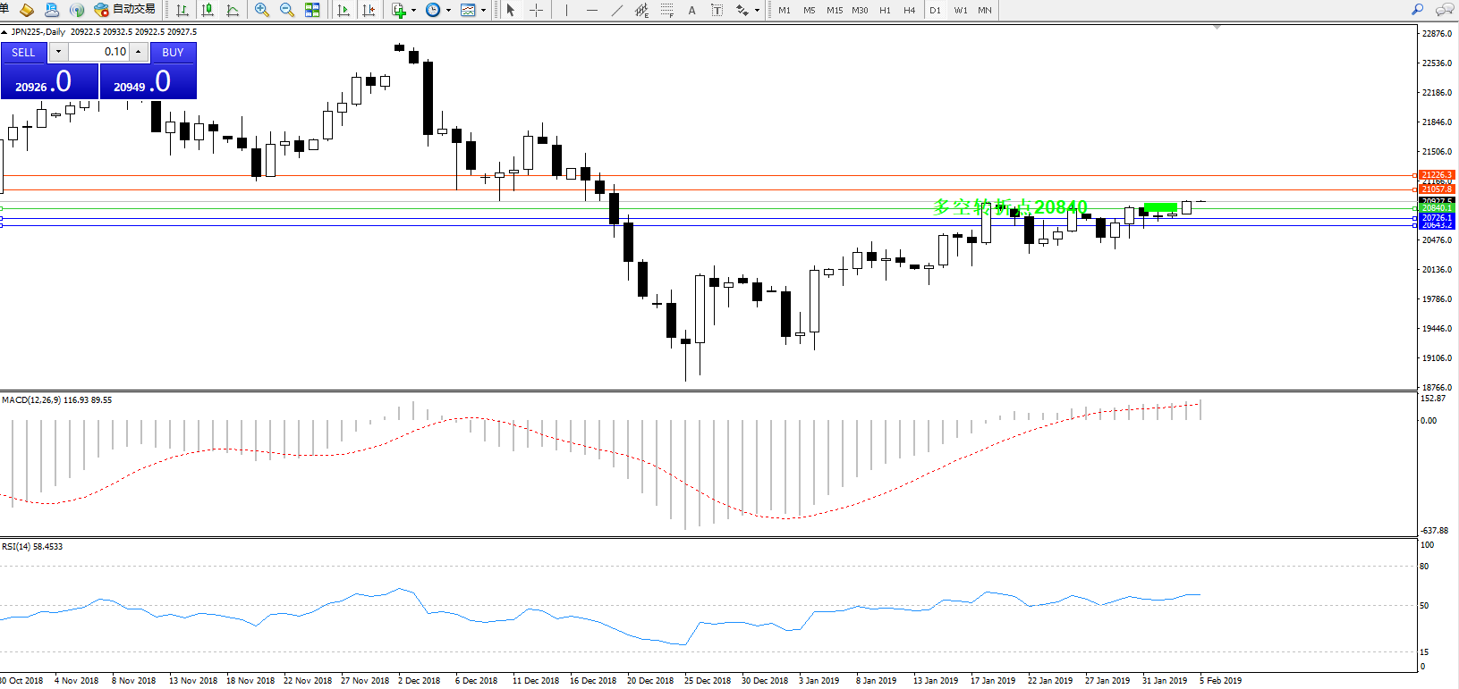 技术点评:多头持续弱势缓慢上行中,MACD指标0轴上方平移,RSI指标50均衡线上方整理;