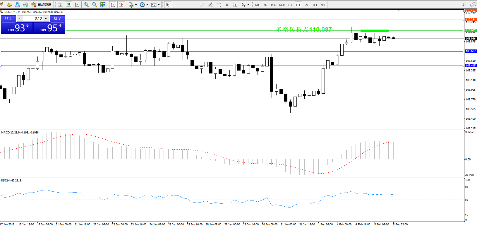 交易策略:110.087下方看跌,目标109.687109.415