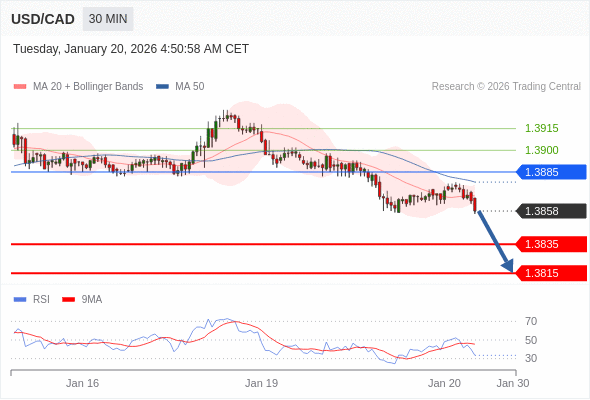 在 1.3885 之下,看跌,目标价位为 1.3835 ,然后为 1.3815 。