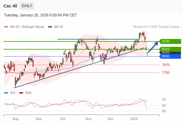 Cac 40 短线: 超短线(当日内)支撑位在8000附近。