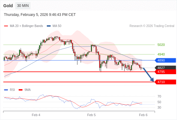 在 4890 之下,看跌,目标价位为 4795 ,然后为 4710 。