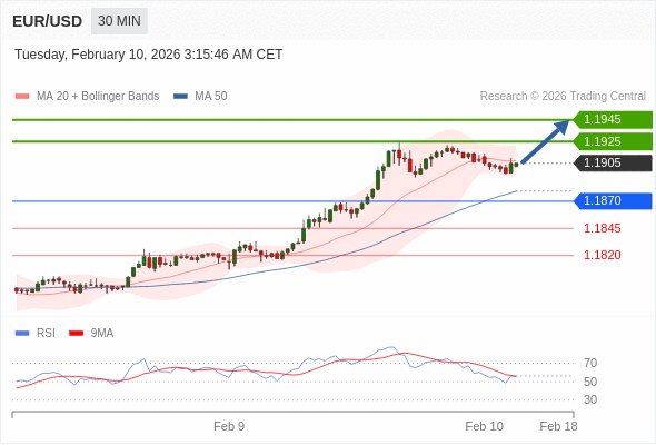 在 1.1870 之上,看涨,目标价位为 1.1925 ,然后为 1.1945 。