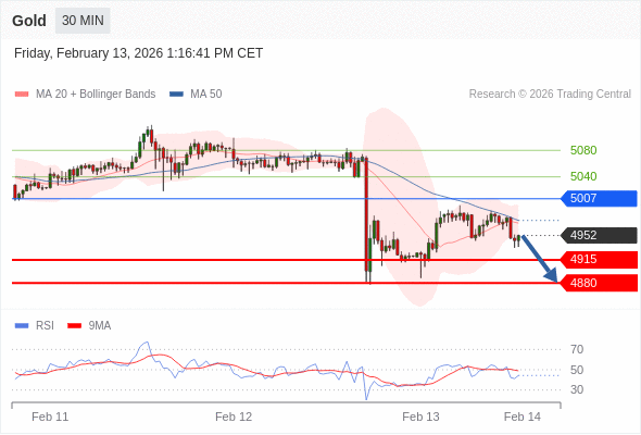 在 5007 之下,看跌,目标价位为 4915 ,然后为 4880 。