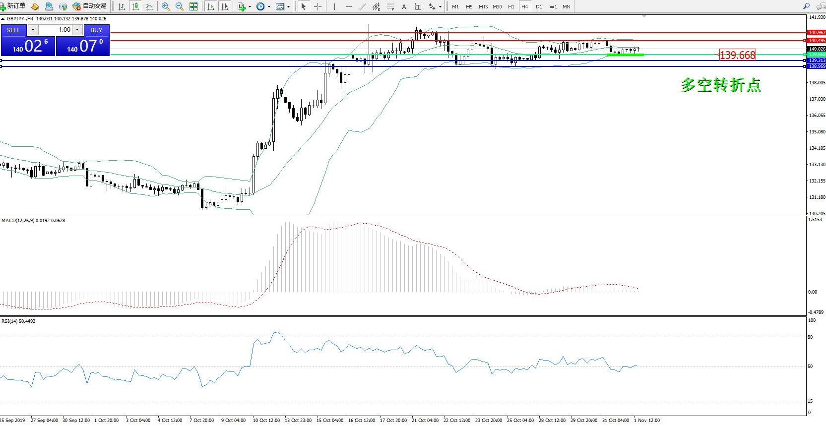 交易策略:139.668上方看涨,目标140.495、140.967