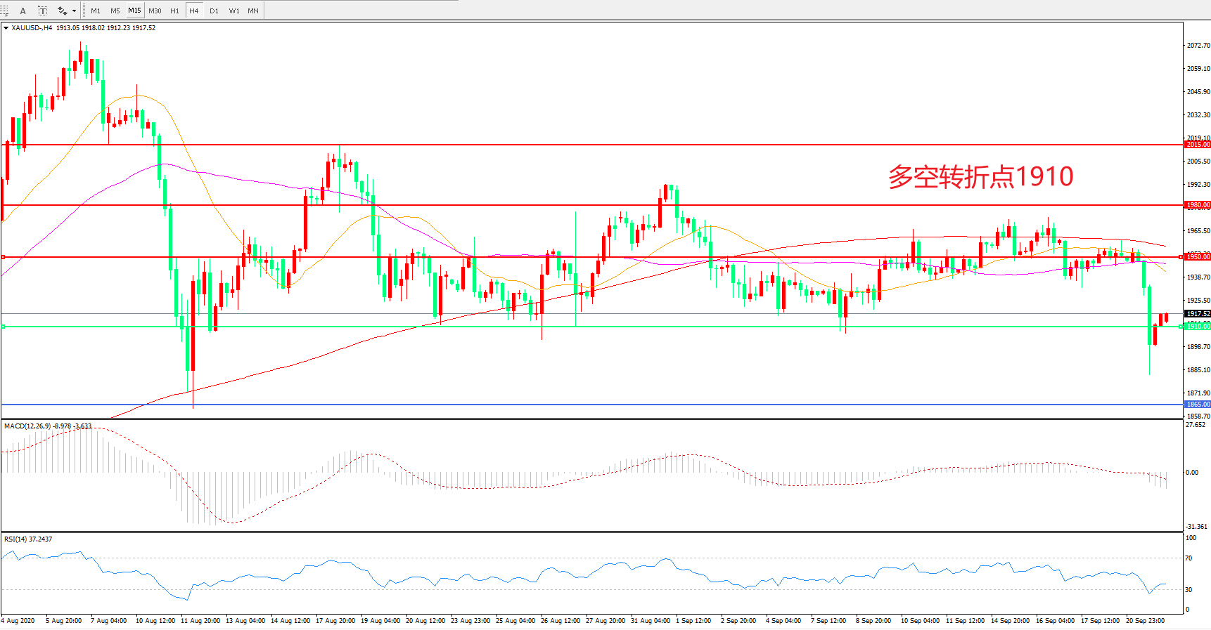 备选策略:在1910.00之下看跌,目标1865.00 1835.00