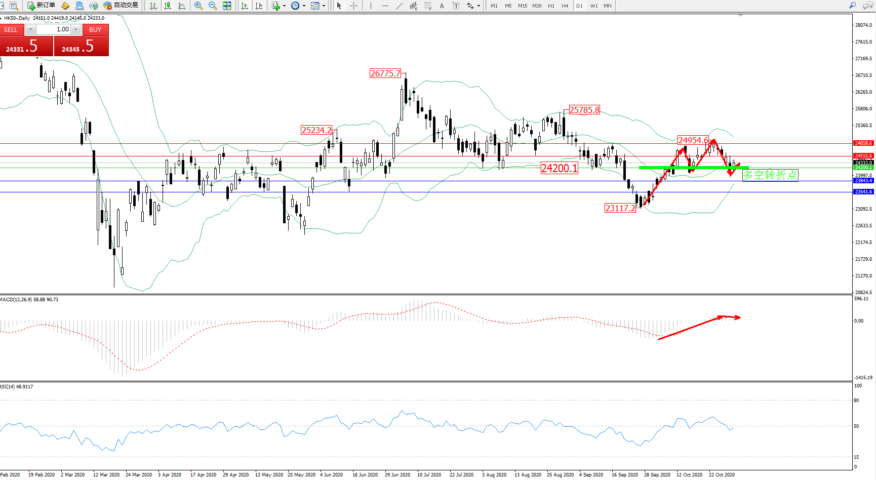 技术点评:低位多头动力维持在布林带指标通道内中上轨区间宽幅震荡走势中,高位弱势短期回撤下移,跌破布林带指标中轨附近节点后维持在中轨下侧弱势震荡,布林带指标呈收口走势持续中,关注中轨下方附近节点,MACD指标处于0轴线上方弱势窄幅整理徘徊中,RSI指标处于多头区域弱势持续整理后开始回撤下破50均衡线进入空头区域徘徊中;
