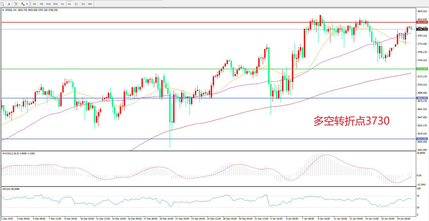 多空转折点:3730.00
