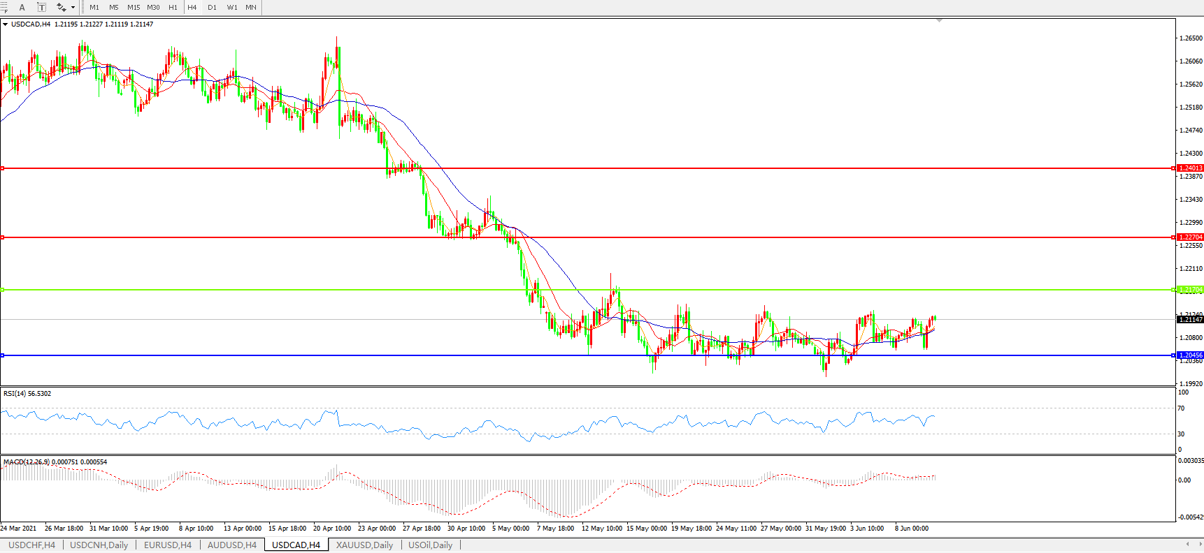 美元兑加元USDCAD 4小时图: