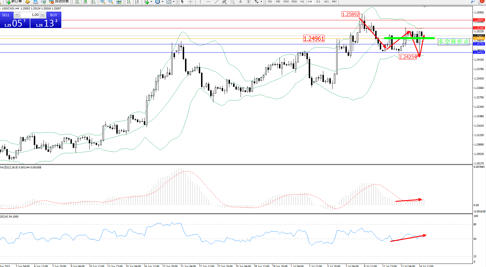 交易策略:1.24961上方看涨,目标1.25348、1.25655
