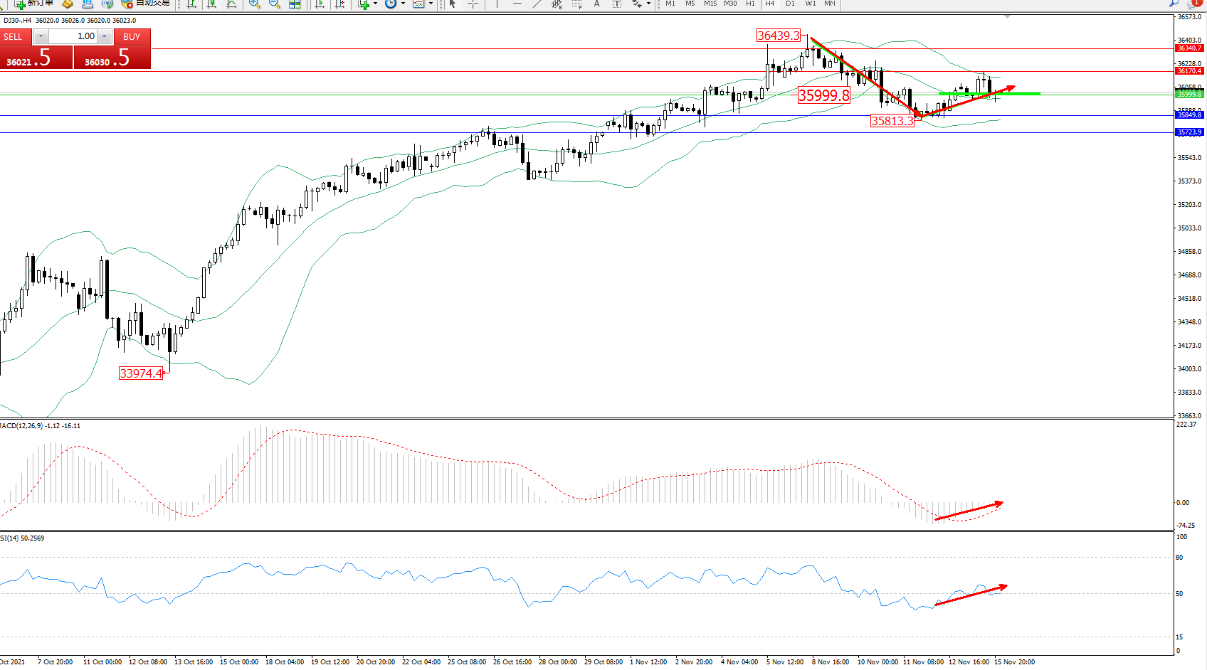 日经指数JPN225——4小时K线图显示:
