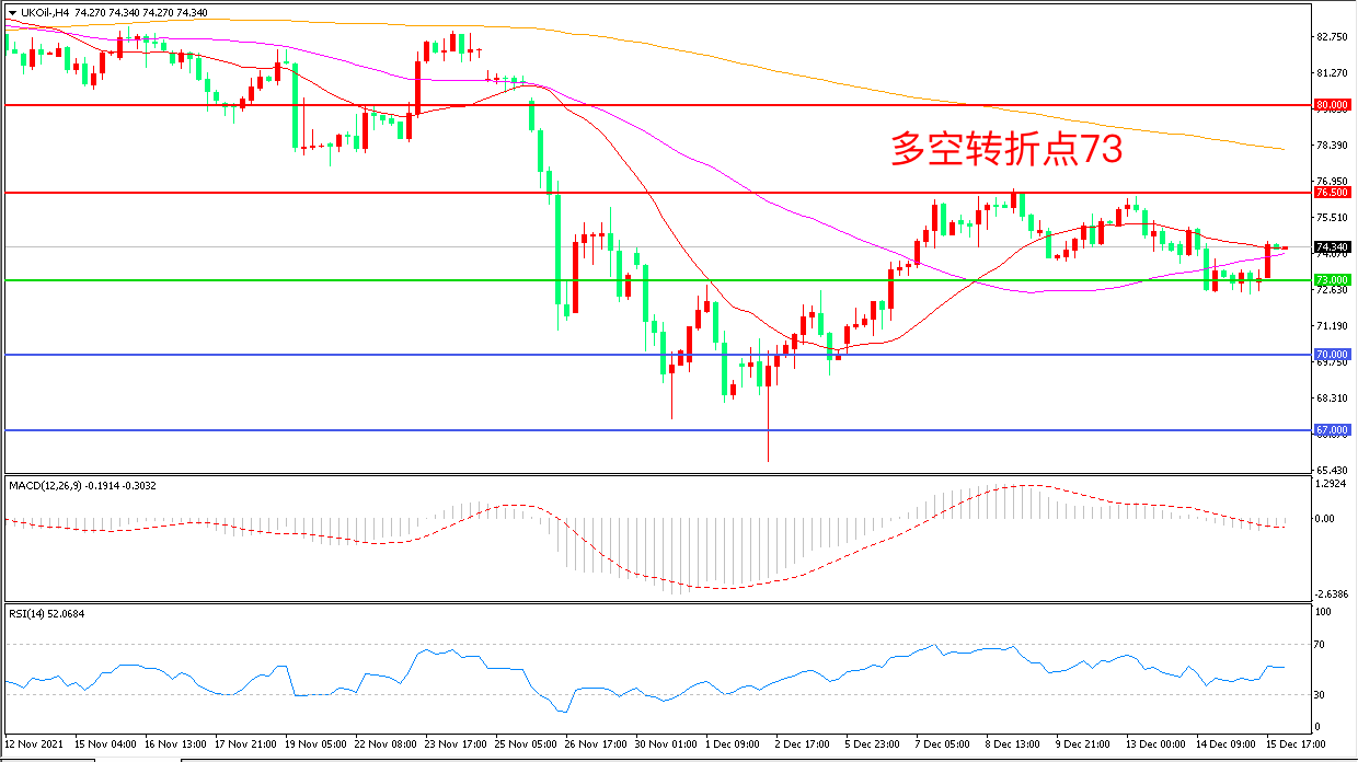 交易策略:在73.00之上看涨,目标76.50              80.00