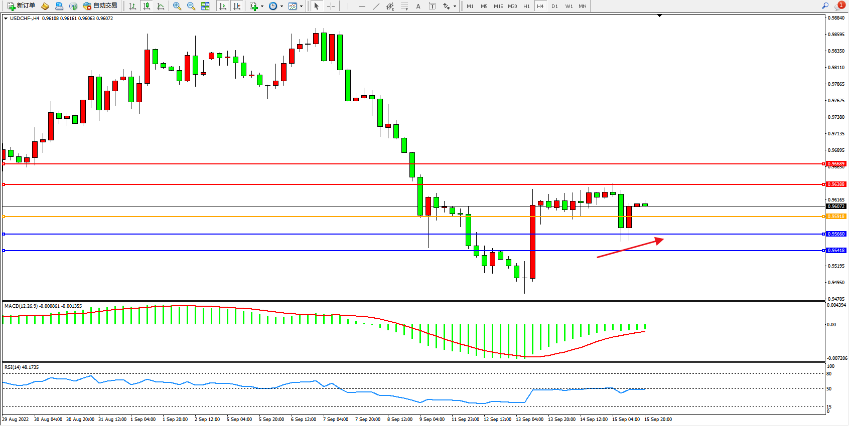 备选策略:0.95918下方看跌,目标0.95660、0.95418