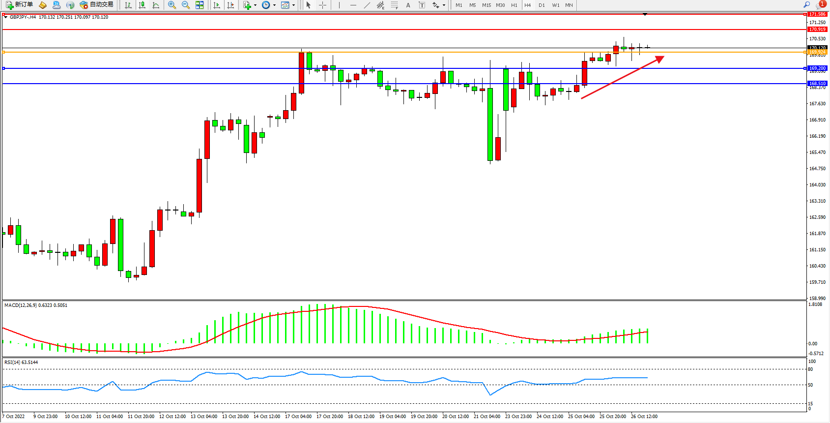 备选策略:169.924下方看跌,目标169.200、168.510