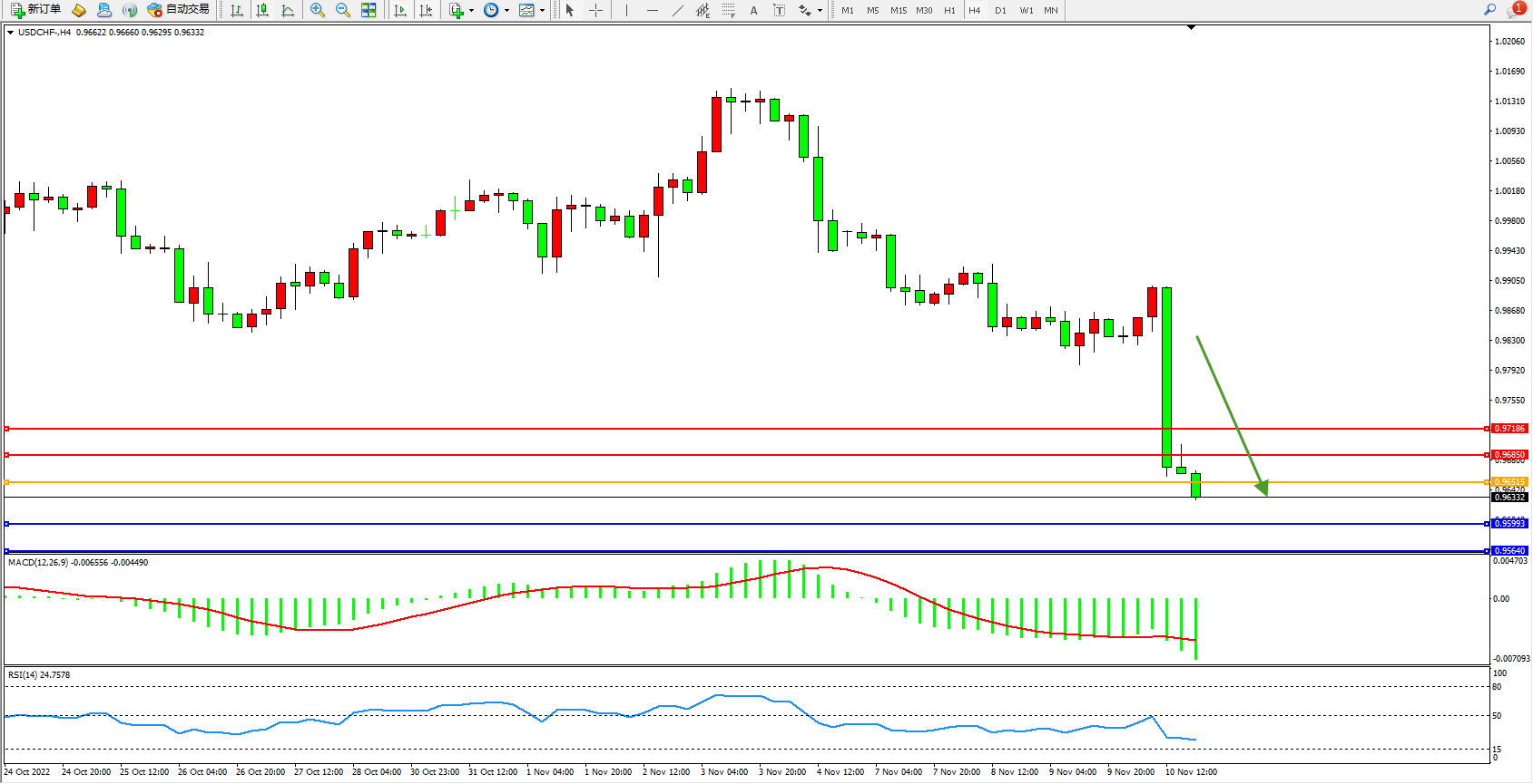 美元瑞郎USDCHF——4小时K线图显示: