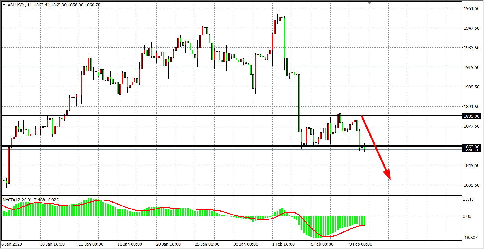 现货黄金XAUUSD    4小时图