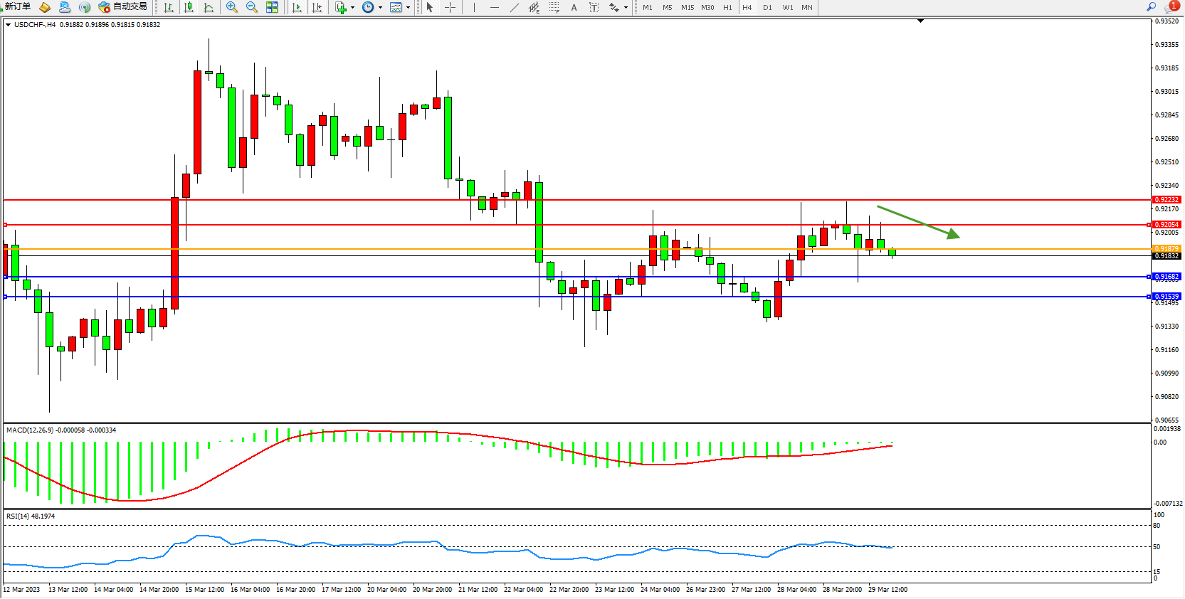 美元瑞郎USDCHF——4小时K线图显示: