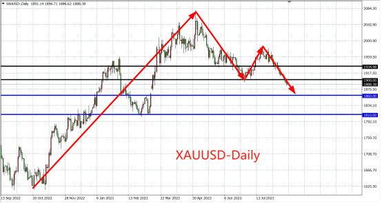 周三(8月16日)美联储会议纪要显示大多数政策制定者继续将抗击通胀放在首位后,同时大多数人认为紧缩政策尚未结束,现货黄金扩大跌幅,跌破前低1893美元,创今年3月以来新低,最终收跌0.49%。