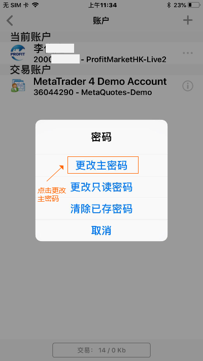 MT4移动端如何修改密码