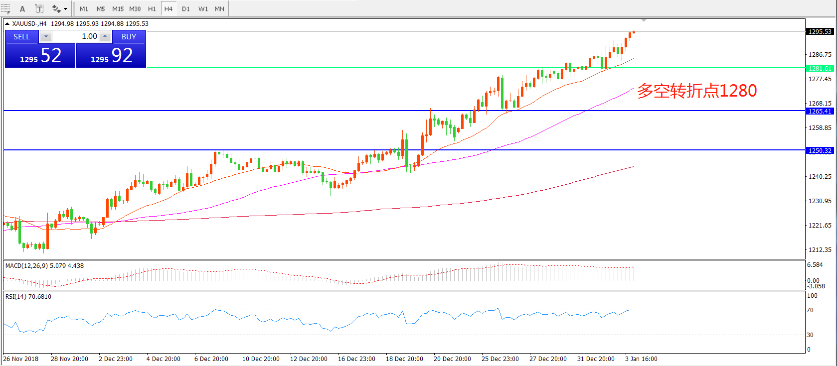 多空转折点:1280.00